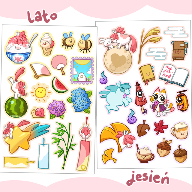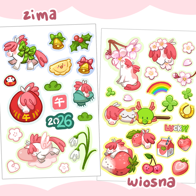 🐴 4 arkusze z naklejkami sezonowymi - dekoracje na każdy miesiąc z maskotką roku konia - Ponponi!
