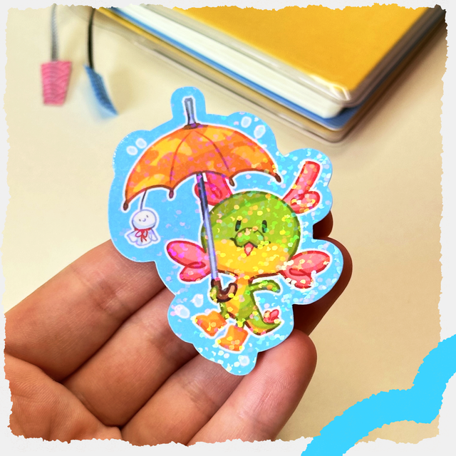Naklejka zabezpieczona wodoodpornym laminatem z efektem holograficznych kropeczek mieniących się w słoncu. ~6,5 x 5cm . Nada się na szkicownik, laptopa, etc. Ręczna robota! 🖐️