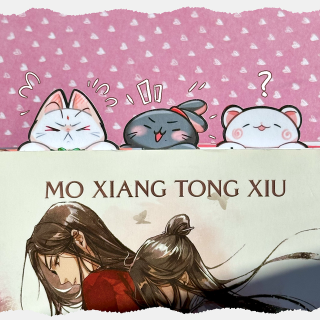 Zakładka magnetyczna z głównymi bohaterami książek autorstwa Mo Xian Tong Xiu w postaci zwierzów w ramionach swoich 'partnerów kultywacji' *wink wonk*.