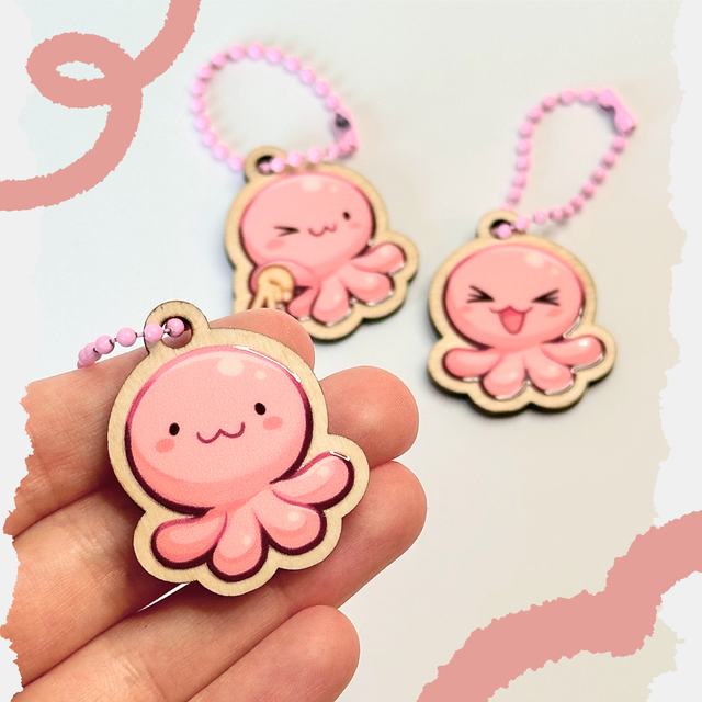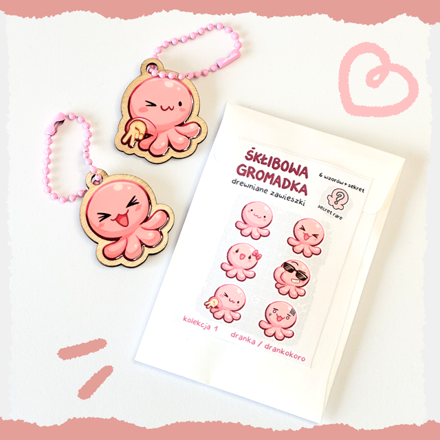 Drewniana zawieszka z losowym śkłibem ze śkłibowej gromadki! 6 wzorów + 1 sekretny~ Ma kulkowy łańcuszek na ~10cm, wygląda czadowo przy piórniku! Eko! 🖐️ Wykonany ręcznie w domowym studio.
